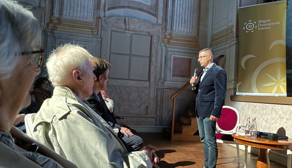 Dr. Margittai Gábor, az MCC Magyar Összetartozás Intézetének igazgatója, a dokumentumfilm egyik rendezője szólt arról a hárompillérű Tiltott kastély programról, amely az erdélyi nemesek kastély-visszafoglaló mozgalmát dolgozza fel könyvben, dokumentumfilmen és vándorkiállítás formájában.
