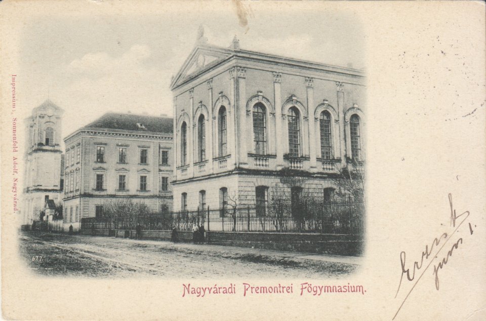 A régi magyar képeslapkincs számos olyan példányt jegyez a nagyváradi premontrei főgimnáziumról, amely szintén bizonyítja a rend létjogosultságát. Az egyik legrégebbi, még úgynevezett hátlapi hosszúcímzéssel ellátott lapot 1898-ban adták fel Nagyváradról Szegedre, és mindössze egy nap alatt célba is ért. A felvételen a pálos alapítású, de a premontreiek által később átvett kéttornyú római katolikus templom, valamint a főgimnázium épületegyüttese látható.