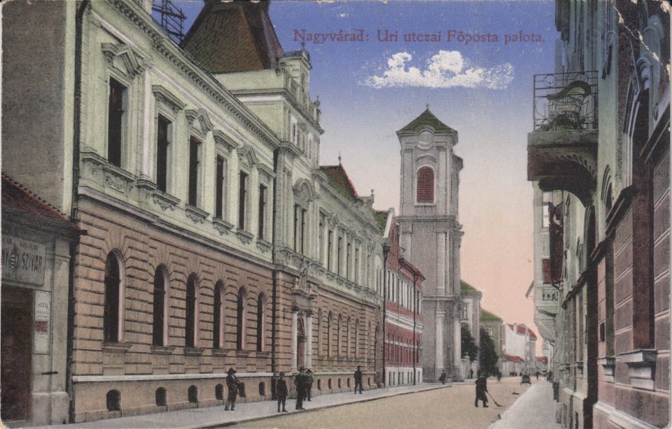 1915-ös keltezésű az a szépen színezett lap, amelyen a magyar királyi főpostaépület mellett maga a templom uralja a teret az Úri utcában. De különösen ritka az a korai mozaiklap is, amelyet a Trianon előtti időszak jeles könyv- és képeslapkiadója, Vidor Manó adott ki, s amelynek jobb alsó sarkában szintúgy feltűnik a premontrei ingatlanvagyon ékköve. A különleges, sok kis képből összetevődő (ezeket felnagyítva külön-külön kiadták képeslapként) levelezőlapot 1915-ben adták fel a Bihar vármegyei Belényesre.