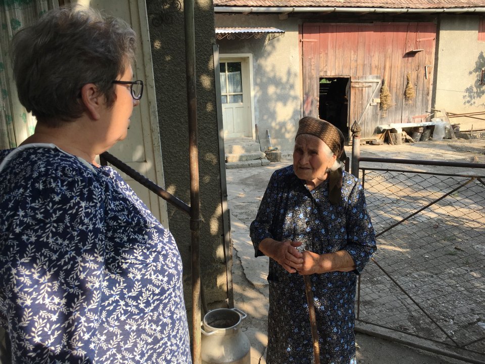 – Baba vagyok, csókolom – kiabál át a kerítésen az asszony többször is, a vad kutyaugatásban elvész a hangja. A házból kissé kócos, hófehér hajú néni tipeg elő, apró, kék virágos ruhája előtt fekete kötény. – Irma néni vak, szemidegsorvadása van – tájékoztat suttogva Baba, majd hangosan mondja: – Magyarországi kutatót hoztam – mire a néni szélsebesen sarkon fordul, és újra eltűnik a házban. De fél perc múlva a kapu előtt áll, most már illendő fejkendőben és kötény nélkül.