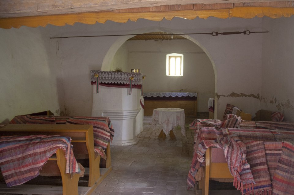 A fedelet most rendben találjuk, az eső éppen nem esik be a 2003-as renoválásnak köszönhetően, amikor a Mezőség túlfeléről, Mezőpanitról toboroztak embereket Lapohos tanár úrék, hogy megmentsék a veszélyeztetett templomot. Amikor azonban átlépjük a szűkös kaput, amelyen egy testesebb, magasabb ember csak szuszogva tudná átpréselni magát, és belépünk a félhomályba, sok biztatót már nem látunk.